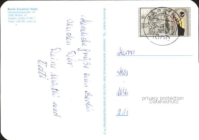 72316675 alte Postkarte BERLIN CITY Excelsior Hotel Restaurant Peacock postalisch gelaufen Erhaltung siehe scans KatCode: 11110011000000