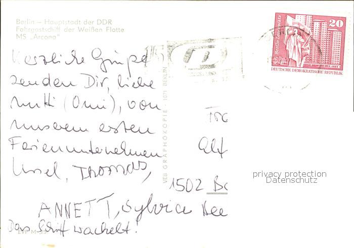 72478239 alte Postkarte BERLIN CITY Fahrgaststiff der Weissen Flotte MS Arcona postalisch gelaufen Erhaltung siehe scans KatCode: 11110011000000