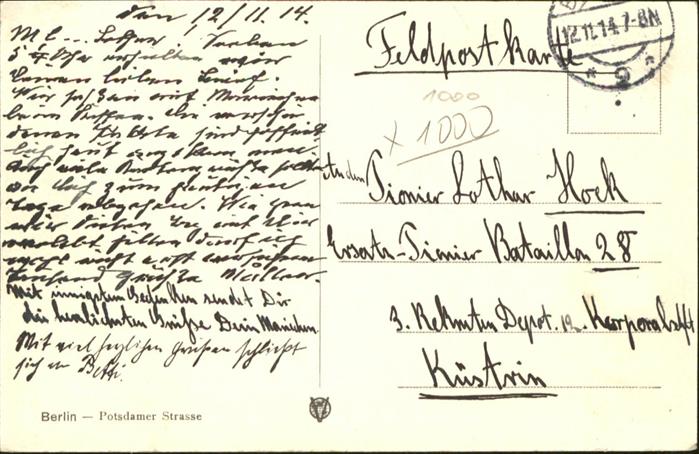 40988893 BERLIN CITY Feldpostkarte postalisch gelaufen Alte Ansichtskarte Postkarte alte Postkarte Katcode 11110011000000