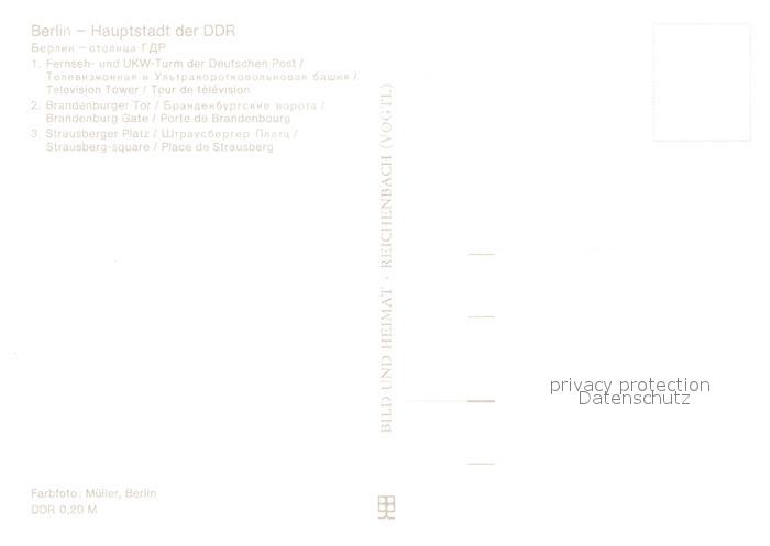 73014756 BERLIN CITY Fernseh und UKW Turm Brandenburger Tor Strausberger Platz postalisch nicht gelaufen Erhaltung siehe scans [WerneD78] KatCode: 11110011000000