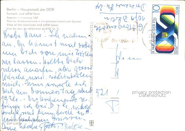 72063453 alte Postkarte BERLIN CITY Fernsehturm bei Nacht postalisch gelaufen Erhaltung siehe scans KatCode: 11110011000000