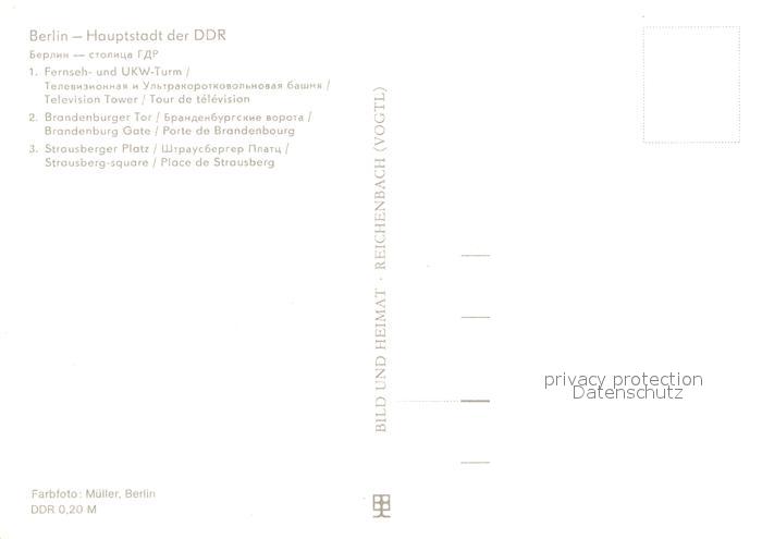 72996226 BERLIN CITY Fernsehturm Brandenburger Tor Strausberger Platz postalisch nicht gelaufen Erhaltung siehe scans [WerneD78] KatCode: 11110011000000