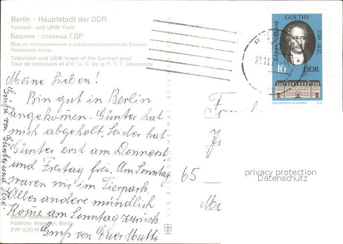 72247152 alte Postkarte BERLIN CITY Fernsehturm Nachtaufnahme postalisch gelaufen Erhaltung siehe scans KatCode: 11110011000000