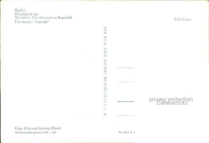 72543711 BERLIN CITY Filmtheater Kosmos postalisch nicht gelaufen Erhaltung siehe scans [LiesaD40 kv019box] KatCode: 11110011000000