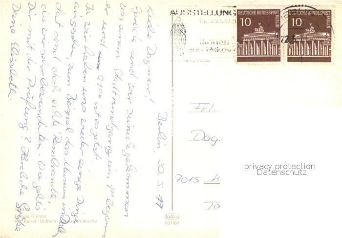 72981576 alte Postkarte BERLIN CITY Fliegeraufnahme Europacenter Kaiser Wilhelm Gedaechtniskirche postalisch gelaufen Erhaltung siehe scans [LiesaD40] KatCode: 11110011000000