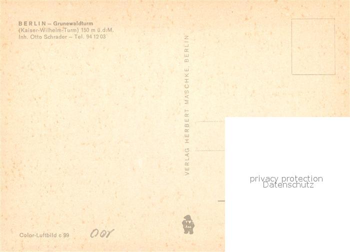 73018900 BERLIN CITY Fliegeraufnahme Grunewaldturm postalisch nicht gelaufen Erhaltung siehe scans [NatalD47] KatCode: 11110011000000