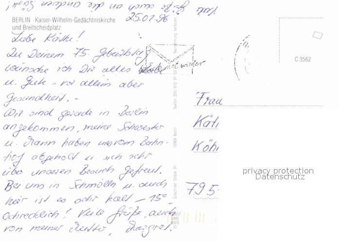 72857429 alte Postkarte BERLIN CITY Fliegeraufnahme Kaiser Wilhelm Gedaechtniskirche Breitscheidplatz postalisch gelaufen Erhaltung siehe scans [WerneD78] KatCode: 11110011000000