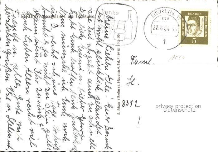 41600107 BERLIN CITY Fliegeraufnahme Messegelaende am Funkturm postalisch gelaufen Erhaltung siehe scans Alte Ansichtskarte Postkarte alte Postkarte hz_L Katcode 11110011000000