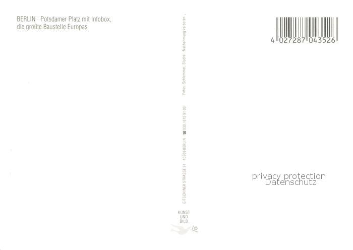 73785097 BERLIN CITY Fliegeraufnahme Potsdamer Platz m. Infobox postalisch nicht gelaufen Erhaltung siehe scans [LiesaD40] Lies Katcode 11110011000000