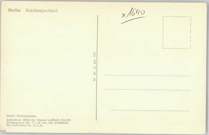 40031621 BERLIN CITY Fliegeraufnahme Reichssportfeld Olympia Stadion postalisch nicht gelaufen Alte Ansichtskarte Postkarte Katcode 11110011000000