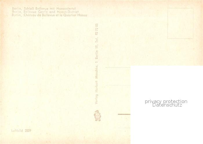 73722721 BERLIN CITY Fliegeraufnahme Schloss Bellevue Hansaviertel postalisch nicht gelaufen Erhaltung siehe scans [LiesaD40] Lies Katcode 11110011000000