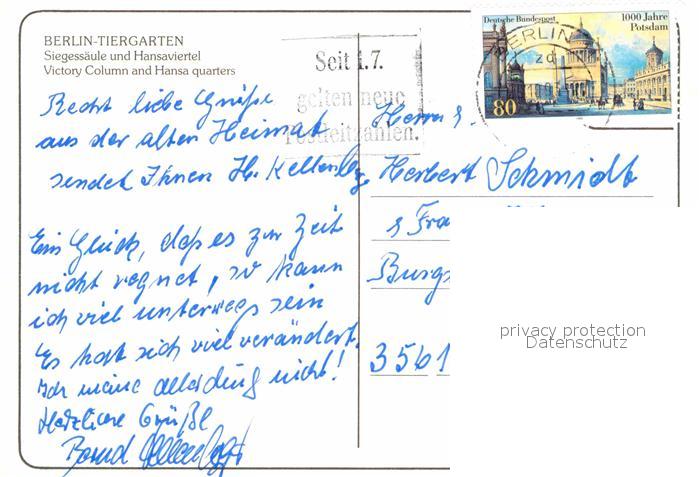 72902700 alte Postkarte BERLIN CITY Fliegeraufnahme Siegessaeule Hansaviertel postalisch gelaufen Erhaltung siehe scans [AndreD76] KatCode: 11110011000000