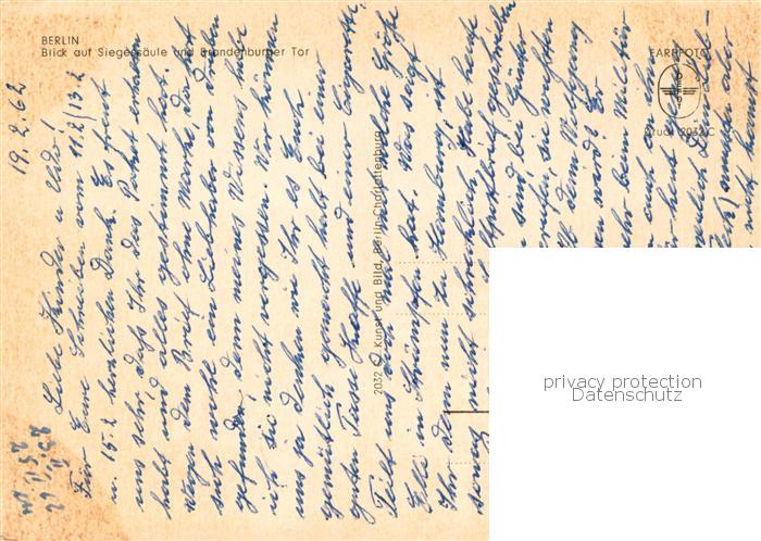 73785088 BERLIN CITY Fliegeraufnahme Siegessaeule u. Brandenburger Tor postalisch nicht gelaufen Erhaltung siehe scans [LiesaD40] Lies Katcode 11110011000000