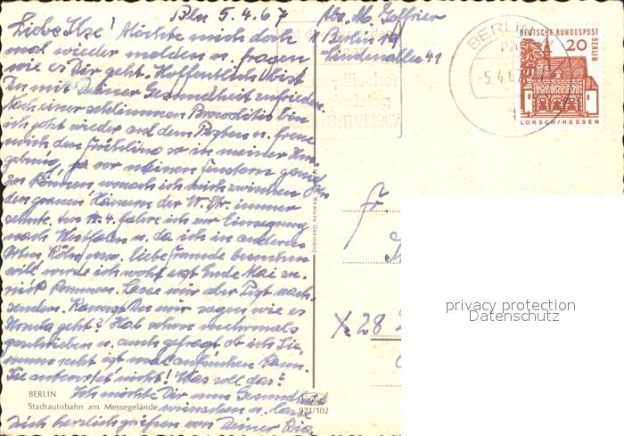 71944785 alte Postkarte BERLIN CITY Fliegeraufnahme Stadtautobahn am Messegelaende postalisch gelaufen KatCode: 11110011000000