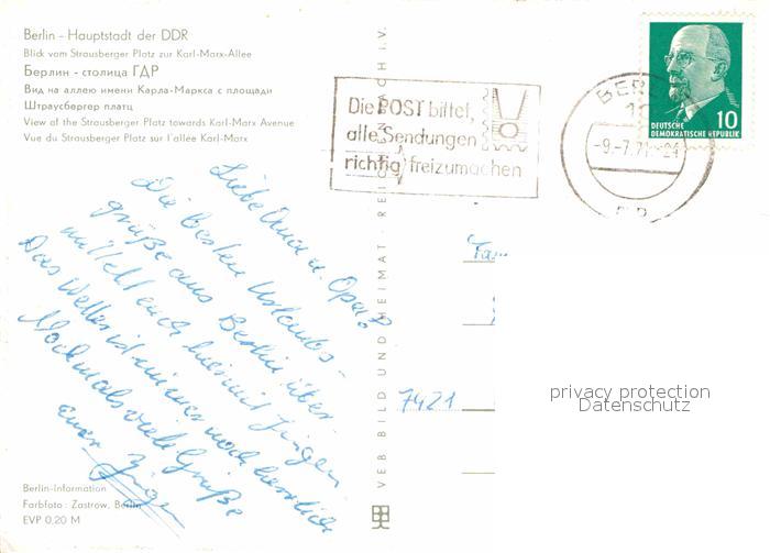 72669137 alte Postkarte BERLIN CITY Fliegeraufnahme Strausberger Platz postalisch gelaufen Erhaltung siehe scans [LiesaD40] KatCode: 11110011000000