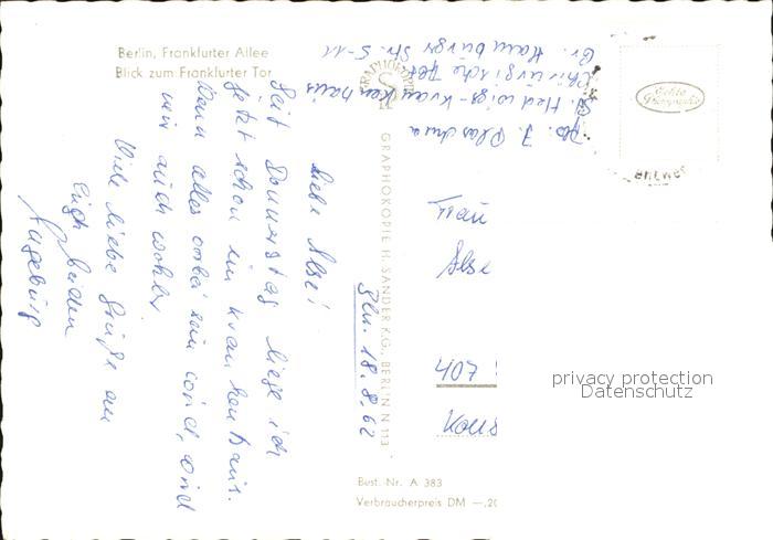 72443687 alte Postkarte BERLIN CITY Frankfurter Allee postalisch gelaufen Erhaltung siehe scans KatCode: 11110011000000