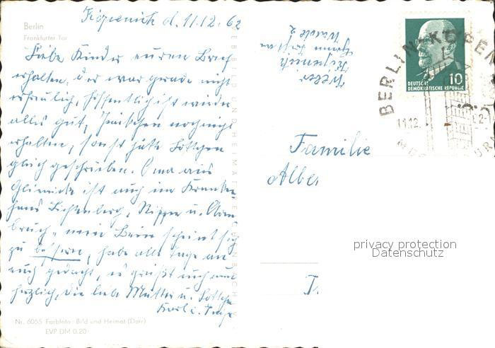 72286762 alte Postkarte BERLIN CITY Frankfurter Tor postalisch gelaufen Erhaltung siehe scans KatCode: 11110011000000