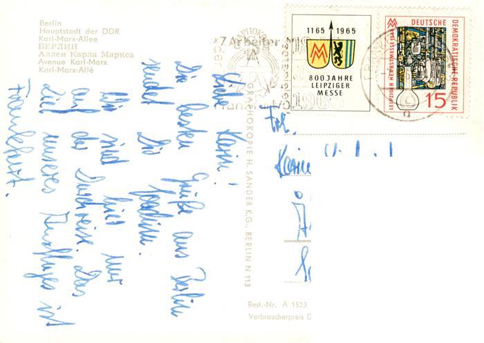 73909329 BERLIN CITY Frankfurter Tor Teilansicht Klub der Jugend und Sportler Filmtheater Kosmos postalisch gelaufen Erhaltung siehe scans [WerneD78] alte Postkarte Wern Katcode 11110011000000