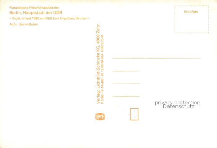 72927600 BERLIN CITY Friedrichstadtkirche Orgel postalisch nicht gelaufen Erhaltung siehe scans [AndreD76] KatCode: 11110011000000