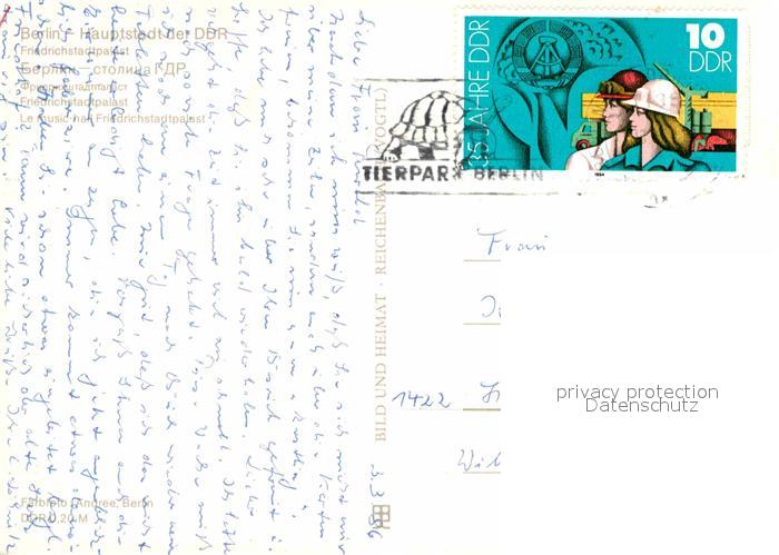 72848910 alte Postkarte BERLIN CITY Friedrichstadtpalast Hauptstadt der DDR postalisch gelaufen Erhaltung siehe scans [FriedD77] KatCode: 11110011000000