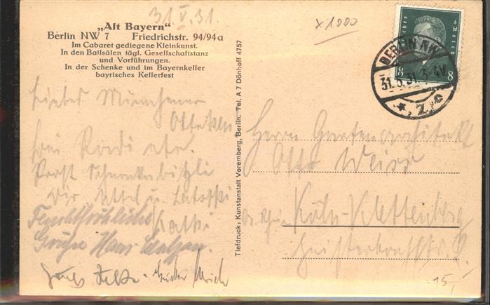41382688 BERLIN CITY Friedrichstr. Bayern-Schenke postalisch gelaufen gute Erhaltung Alte Ansichtskarte Postkarte alte Postkarte Stef Katcode 11110011000000