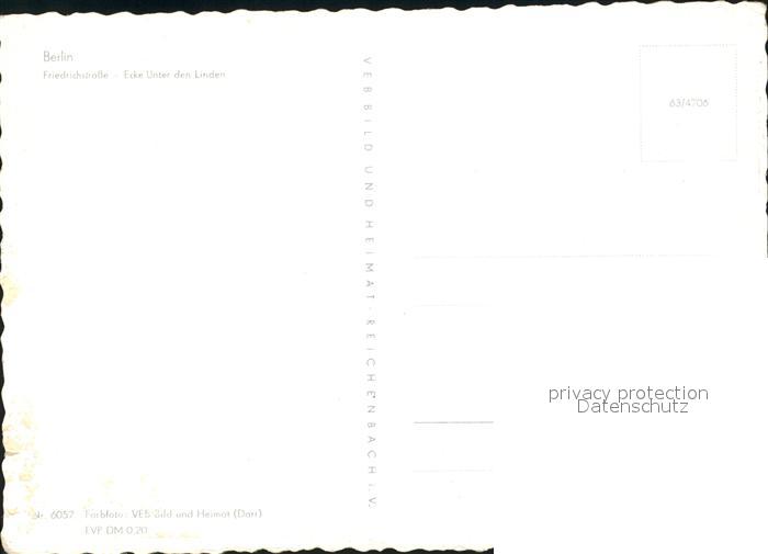 72124896 BERLIN CITY Friedrichstrasse Ecke Unter den Linden postalisch nicht gelaufen Erhaltung siehe scans KatCode: 11110011000000
