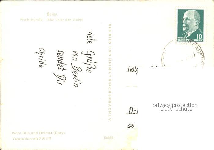 72120462 alte Postkarte BERLIN CITY Friedrichstrasse Ecke Unter den Linden postalisch gelaufen Erhaltung siehe scans KatCode: 11110011000000