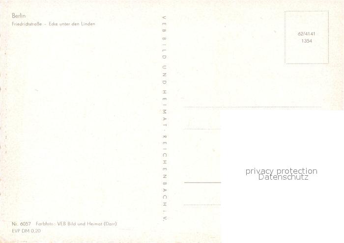 72997287 BERLIN CITY Friedrichstrasse Ecke Unter den Linden postalisch nicht gelaufen Erhaltung siehe scans [WerneD78] KatCode: 11110011000000