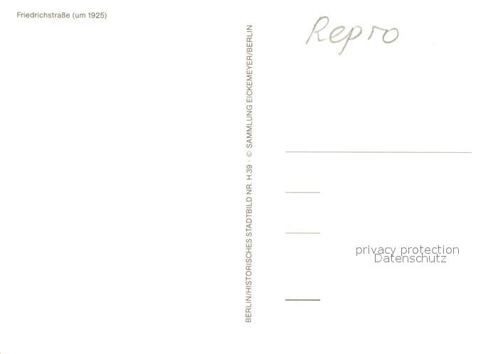73138774 BERLIN CITY Friedrichstrasse um 1925 Repro Historisches Stadtbild Nr H 39 postalisch nicht gelaufen Erhaltung siehe scans [FriedD77] KatCode: 11110011000000