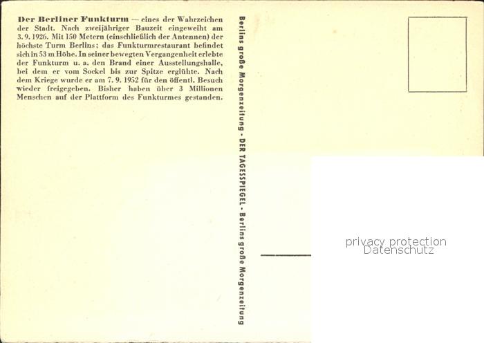 72104972 BERLIN CITY Funkturm postalisch nicht gelaufen Erhaltung siehe scans KatCode: 11110011000000