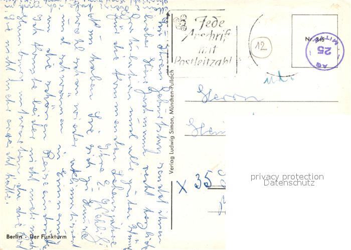 72958534 alte Postkarte BERLIN CITY Funkturm postalisch gelaufen Erhaltung siehe scans [PaolaD17] KatCode: 11110011000000