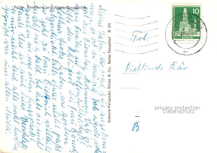 72928113 alte Postkarte BERLIN CITY Funkturm Ausstellungshallen postalisch gelaufen Erhaltung siehe scans [AndreD76] KatCode: 11110011000000