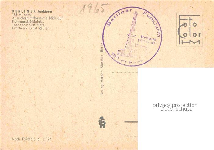 72891270 alte Postkarte BERLIN CITY Funkturm Hammerskjoeldplatz Theodor Heuss Platz postalisch gelaufen Erhaltung siehe scans [WerneD78] KatCode: 11110011000000