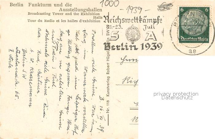 73711599 BERLIN CITY Funkturm und die Austellungshallen postalisch gelaufen Erhaltung siehe scans [LiesaD40] alte Postkarte Lies Katcode 11110011000000