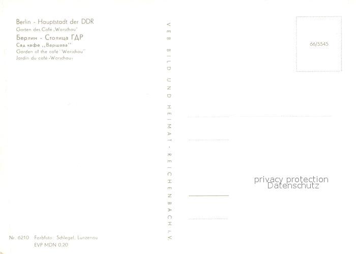 72998410 BERLIN CITY Garten des Cafe Warschau postalisch nicht gelaufen Erhaltung siehe scans [WerneD78] KatCode: 11110011000000