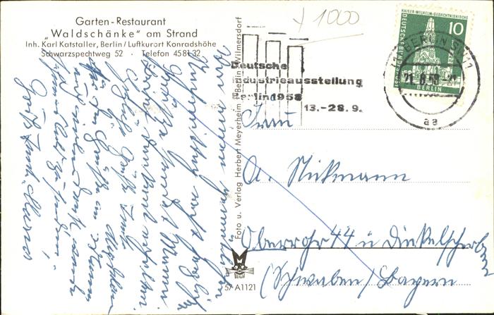 41221303 BERLIN CITY Garten-Restaurant Waldschaenke postalisch gelaufen gute Erhaltung Alte Ansichtskarte Postkarte alte Postkarte hz_U Katcode 11110011000000