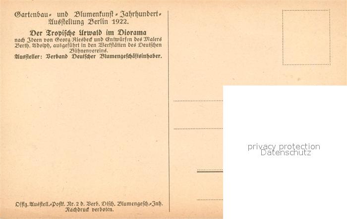 43495632 BERLIN CITY Gartenbau Ausstellung 1922 Der Tropische Urwald im Diorama postalisch nicht gelaufen Erhaltung siehe scans [WerneD78] Wern Katcode 11110011000000