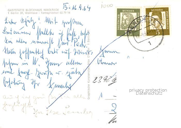 43506525 BERLIN CITY Gaststaette Blockhaus Nikolskoe postalisch gelaufen Erhaltung siehe scans [KathaD81] alte Postkarte Kath Katcode 11110011000000