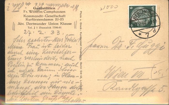 41382681 BERLIN CITY Gaststaette Kommandit-Gesellschaft Kurfuerstendamm postalisch gelaufen gute Erhaltung Alte Ansichtskarte Postkarte alte Postkarte Stef Katcode 11110011000000