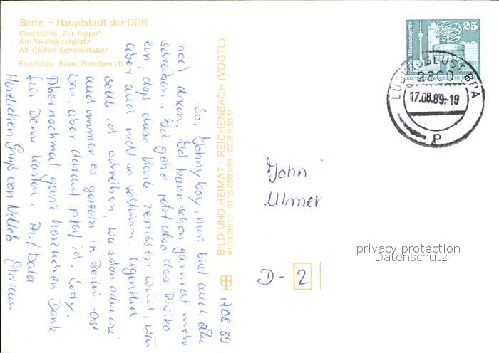 72311570 alte Postkarte BERLIN CITY Gaststaette zur Rippe am Nikolaikirchplatz postalisch gelaufen Erhaltung siehe scans KatCode: 11110011000000