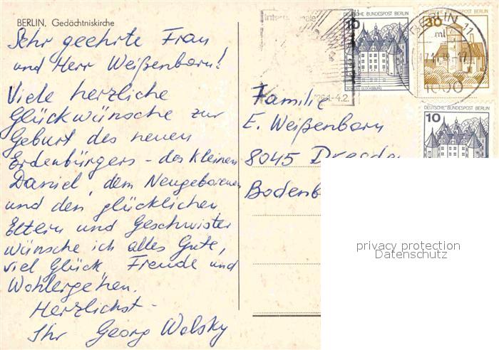 72624602 alte Postkarte BERLIN CITY Gedaechtniskirche postalisch gelaufen Erhaltung siehe scans [WerneD78] KatCode: 11110011000000