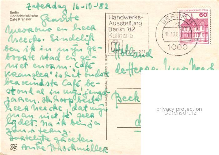 72936255 alte Postkarte BERLIN CITY Gedaechtniskirche Cafe Kranzler postalisch gelaufen Erhaltung siehe scans [WerneD78] KatCode: 11110011000000