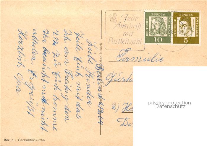 73047629 alte Postkarte BERLIN CITY Gedaechtniskirche postalisch gelaufen Erhaltung siehe scans [PaolaD17] KatCode: 11110011000000