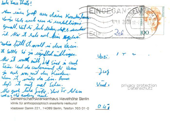 73656684 BERLIN CITY Gemeinschaftskrankenhaus Havelhoehe Fliegeraufnahme postalisch gelaufen Erhaltung siehe scans [WerneD78] alte Postkarte Wern Katcode 11110011000000