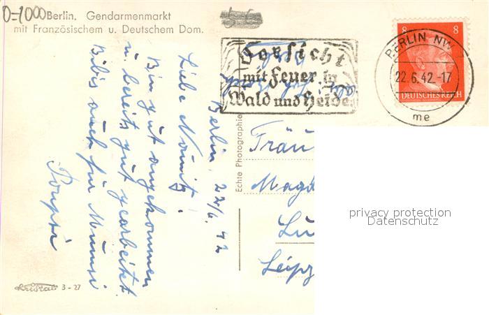 73696802 BERLIN CITY Gendarmenmarkt Franzoesischer und Deutscher Dom postalisch gelaufen Erhaltung siehe scans [FriedD77] alte Postkarte Frie Katcode 11110011000000