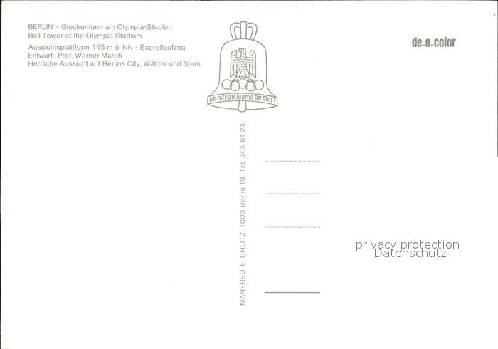 72257692 BERLIN CITY Glockenturm am Olympiastadion postalisch nicht gelaufen Erhaltung siehe scans KatCode: 11110011000000