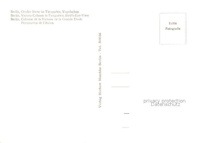 72952521 BERLIN CITY Grosser Stern im Tiergarten aus der Vogelschau Siegessaeule postalisch nicht gelaufen Erhaltung siehe scans [FriedD77] KatCode: 11110011000000