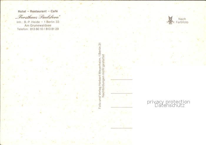 72518902 BERLIN CITY Grunewald Hotel Restaurant Cafe Forsthaus Paulsborn postalisch nicht gelaufen Erhaltung siehe scans KatCode: 11110011000000