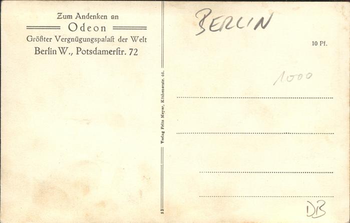 41400865 BERLIN CITY Gruppenbild Andenken an Odeon Vergnuegungspalast Theaterspiel postalisch nicht gelaufen gute Erhaltung Alte Ansichtskarte Postkarte hz_F Katcode 11110011000000