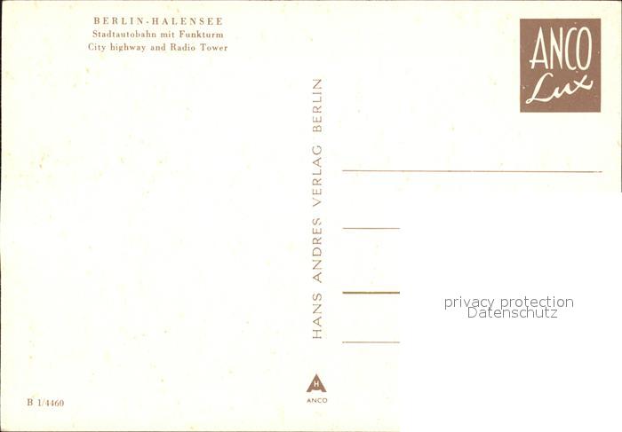 72598468 BERLIN CITY Halensee Stadtautobahn mit Funkturm postalisch nicht gelaufen Erhaltung siehe scans [LiesaD40] KatCode: 11110011000000